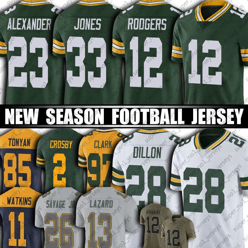 12 Aaron Rodgers Jones Jersey Football Green Bayes Packer Allen Lazard Aj Dillon Jaire Alexander David Bakhtiari Jerseys Mason Crosby Rashan Gary Watson Savage Amos From Super No1 Jerseys 16 6 Dhgate Com